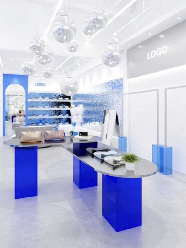 亚克力材料有着无与伦比的加工性能,可实现直线、曲线、几何等多重造型及组合,化身漂亮的空间装饰元素。在店铺装饰中,亚克力通过合理的布局,流畅的动线,与众不同的艺术陈设,能轻松打造现代、轻盈感官的空间感,满足不同消费场景的商业需求。